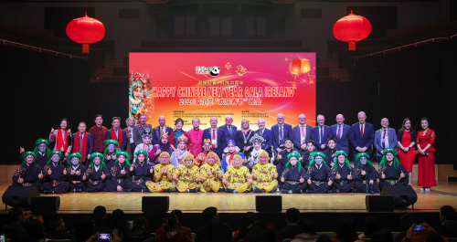 2026年2月16日,驻爱尔兰大使赵希源夫妇出席在国家音乐厅举办的2026年爱尔兰“欢乐春节”晚会。爱尔兰前总理埃亨出席并致辞,政府部门和国防军代表、议员、地方郡市长、驻爱使节、社会各界人士等1000余名嘉宾出席。